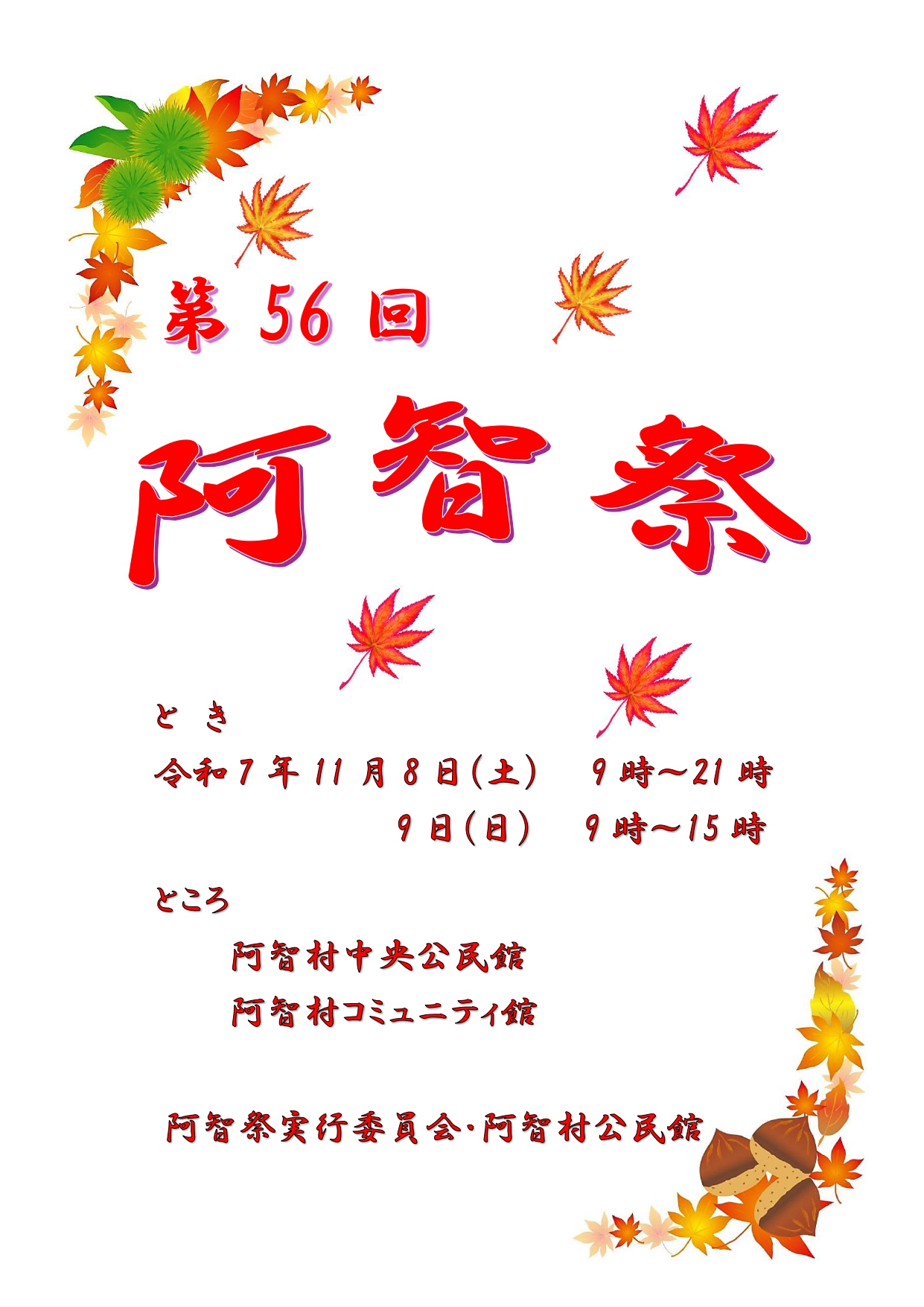 11/8㊏・9㊐は阿智祭@阿智村中央公民館
