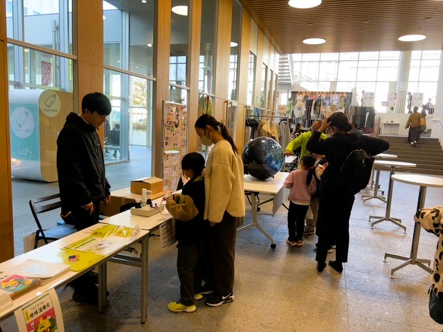 ファッションショー当日は、当協会もデジタル地球儀スフィアや省エネ実験機器などを来場者に体験いただきました。【写真右】。