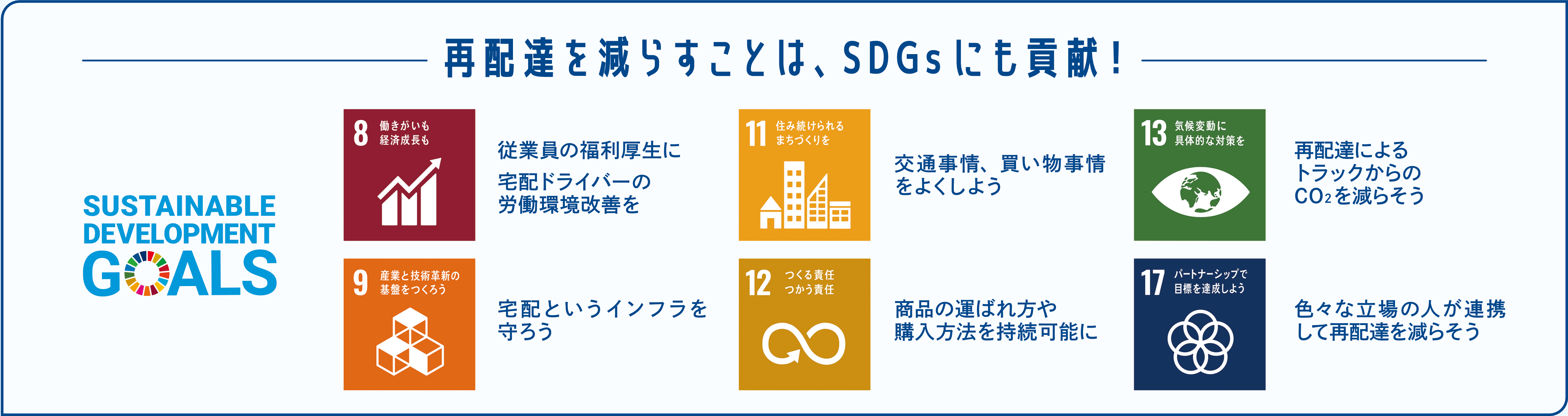 - 少しの配慮で再配達が防げるのは、渋滞緩和、エネルギーの削減などの観点にとどまらず、運送業の方々の働き方改革にも重要で、とても奨励されること。(2022年度賛同事業所アンケートより)