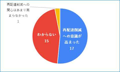 再配達削減への意識について、「高まった」と「わからない」がほぼ半数ずつ。